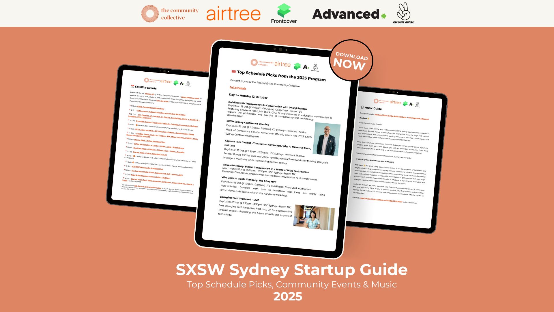 Download our Top Schedule Picks Guide for the ANZ tech & startup community, brought to you by The Community Collective x Airtree x Frontcover x Advanced R&D x Vibe Guide Ventures.